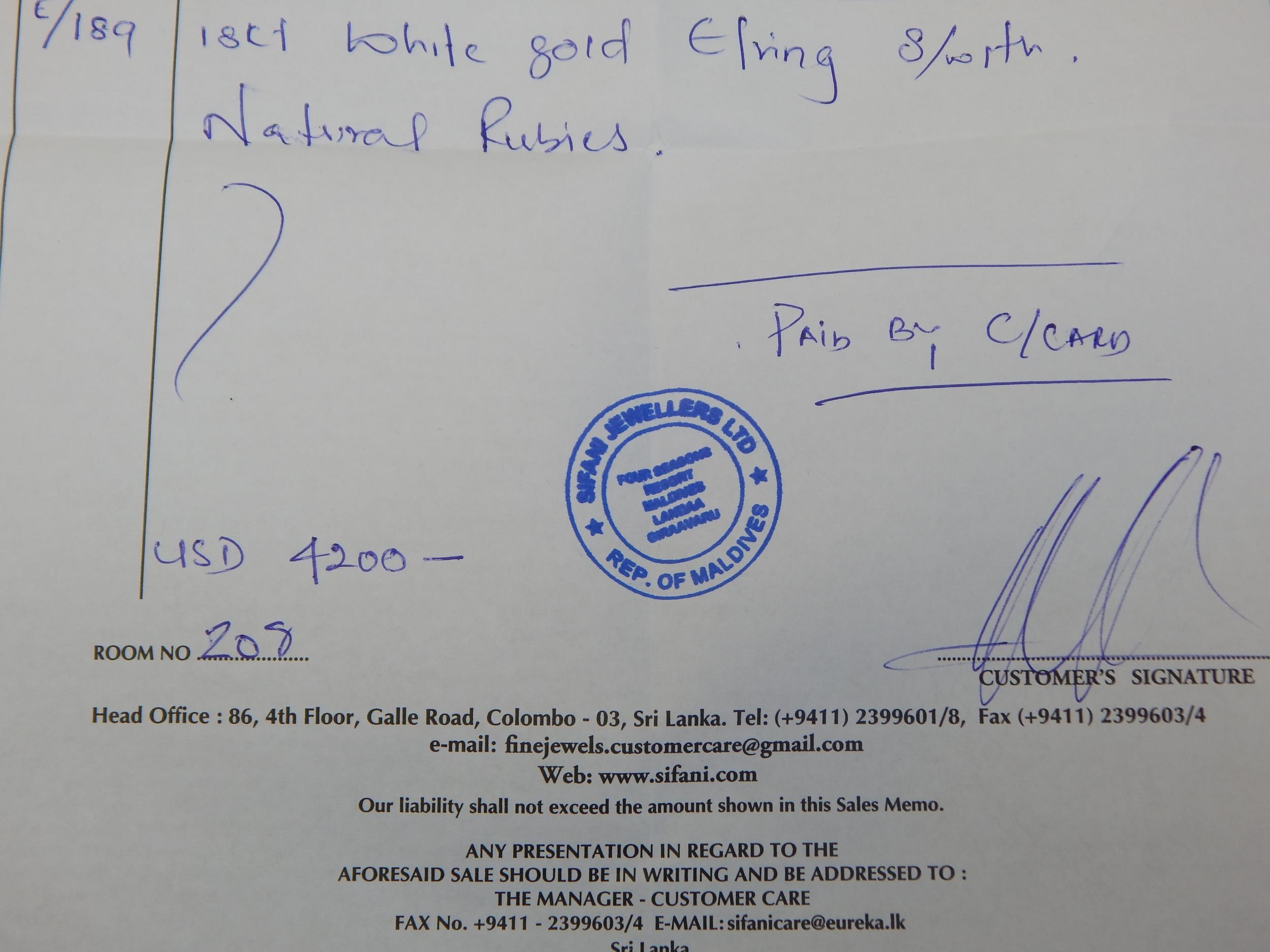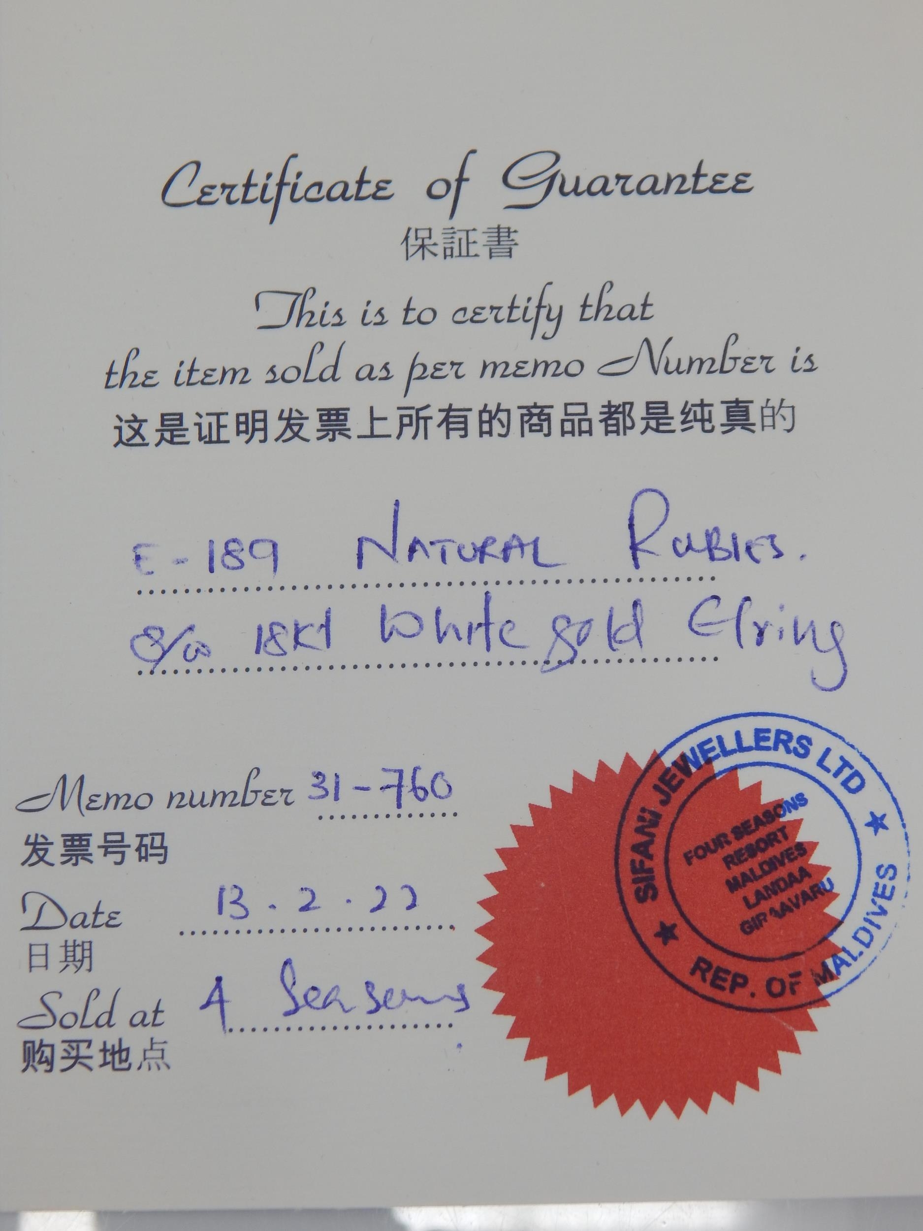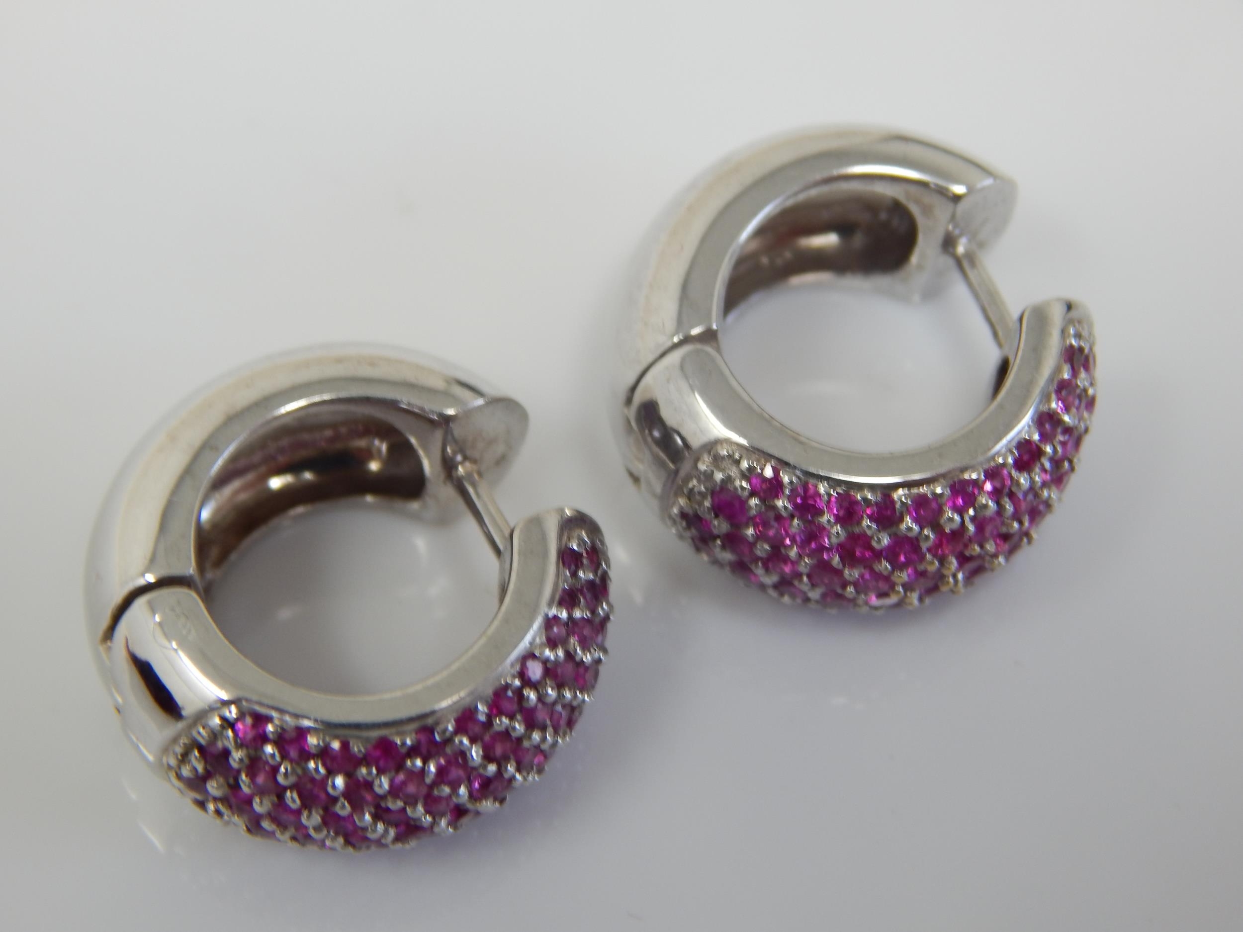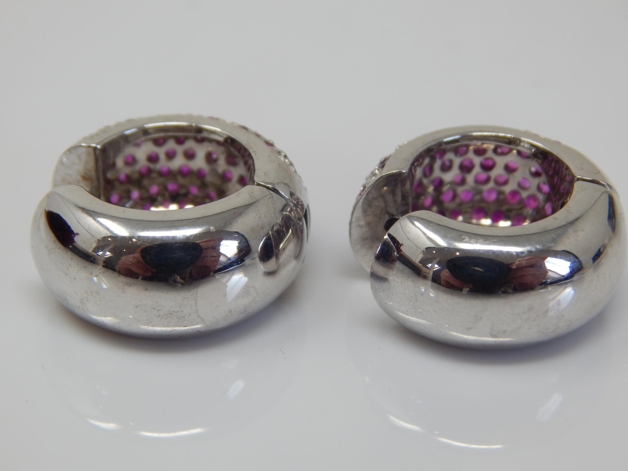 A Pair of Heavy 18ct White Gold Earrings Set with Natural Rubies: Weight 20.58g Complete with Original Purchase Receipt & Certificate of Guarantee